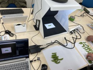 また、WEBカメラの撮影では、枝豆の画像に影が映り込むと、画像の質が落ち、AIの学習レベルが落ちます。そのため、影を最小限にする光の当て方や撮影方法を考えたり、再現性を持たせるために、しっかりと記録を残す必要があります。